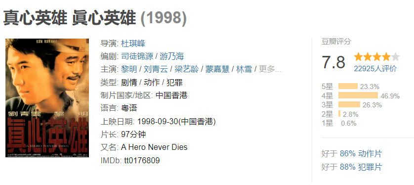 1998年,她搭档黎明共同合作了电影《真心英雄》。在这部剧中,她饰演的“琪”可以说是一个悲剧角色。