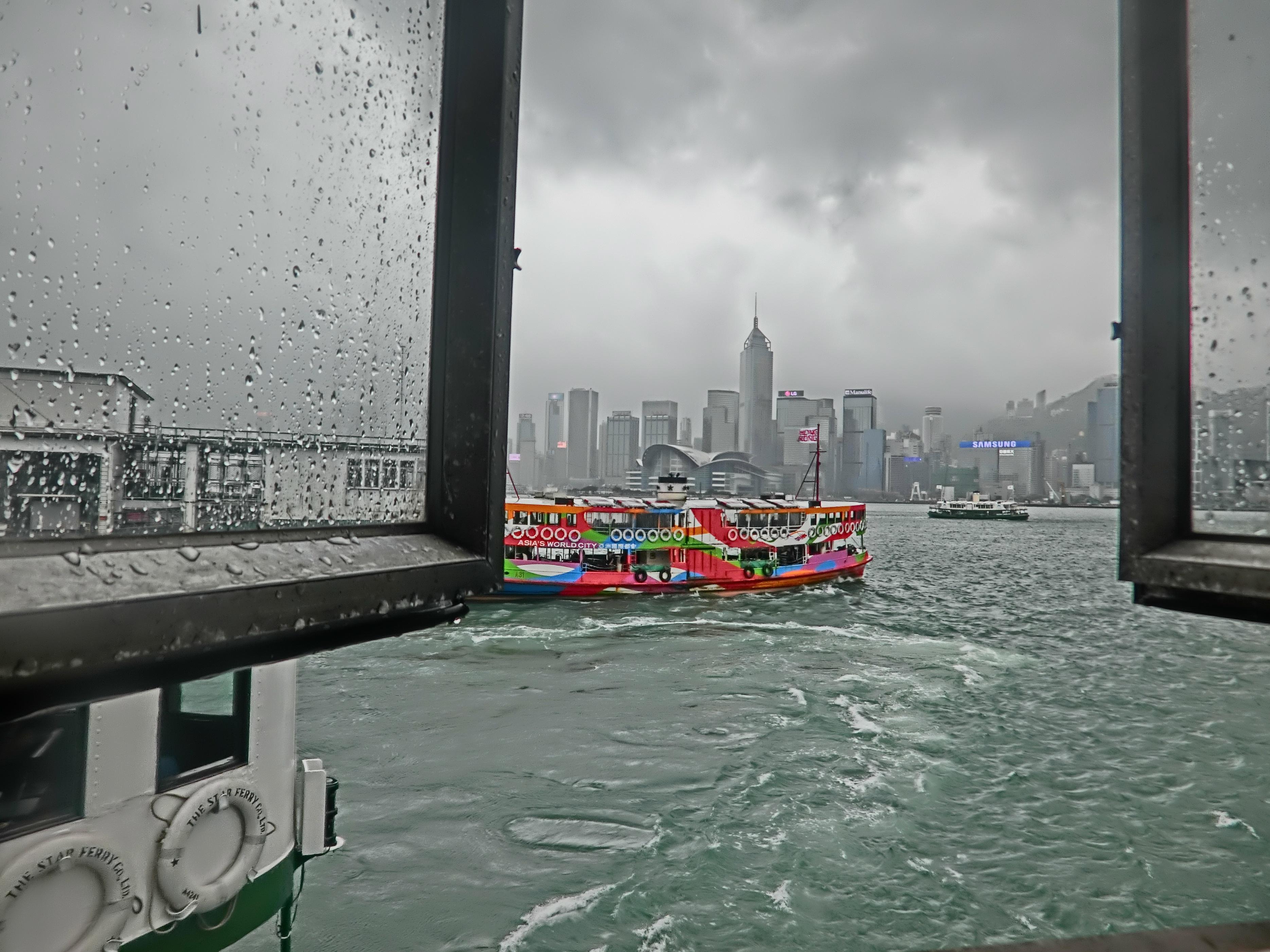 当时我去的时候好巧不巧赶上了阴雨天,风景没那么美丽但依旧兴奋,大白天来维多利亚港主要是为了体验一把这儿的轮渡——2块钱/人的天星小轮,比武汉10块钱/人的普通轮渡的体验感好很多。